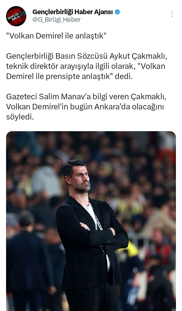 Basın sözcüsü Aykut Çakmaklı, Volkan Demirel ile prensipte anlaşma sağlandığını söylemiş. Bence çok yanlış bir tercih. Volkan Demirel, geçen sezon Bodrumspor’da İsmet Taşdemir’in yerine gelmiş ve başarılı olamayınca sezonu tamamlayamadan ayrılmak zorunda kalmıştı. Aynı olayı şimdi biz yaşıyoruz maalesef.