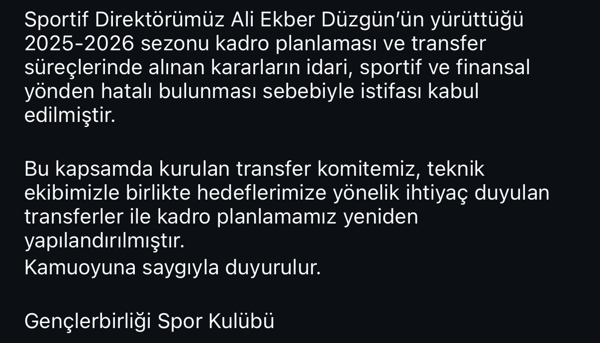 diğer bir önemli hususunda, özellikle yönetim içinde olan gençlerbirliklilerin küstürülmesi ya da tasfiyesinden sonra yerlerine gelecek insanların “tepeden inme” bir şekilde görevlere getirilmesini engellemektir. korkunç iddaalar duyuyorum. bir holding’in hem de kulübe çökmeye çalışmış bir holding’in takımının ceo’su ali ekber Hoca’nın yerine sportif direktör olarak gelecekmiş? bu bir iddaa olabilir doğru da olmayabilir sadece böyle şeylerin yapılmasının engellenmesi gerekmektedir.