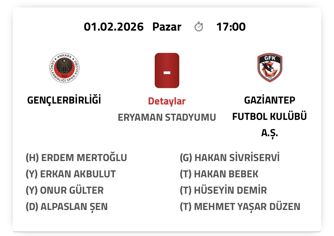 Gençlerbirliği - Gaziantep Futbol Kulübü A.Ş.